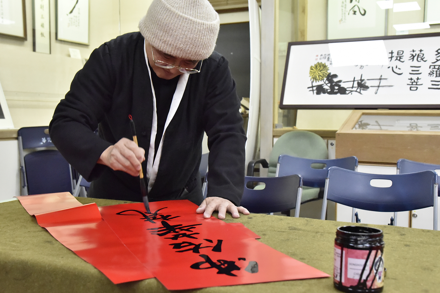 佛教藝術學系吳大仁老師於春聯活動現場揮毫。