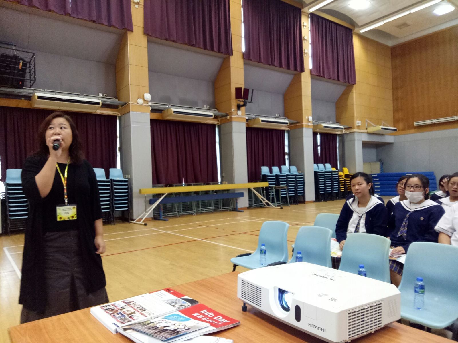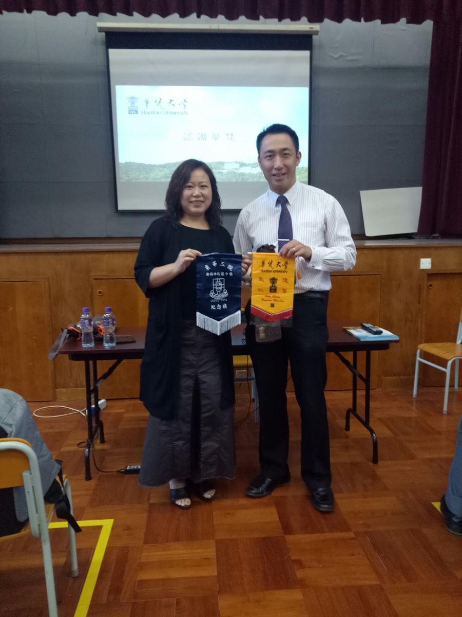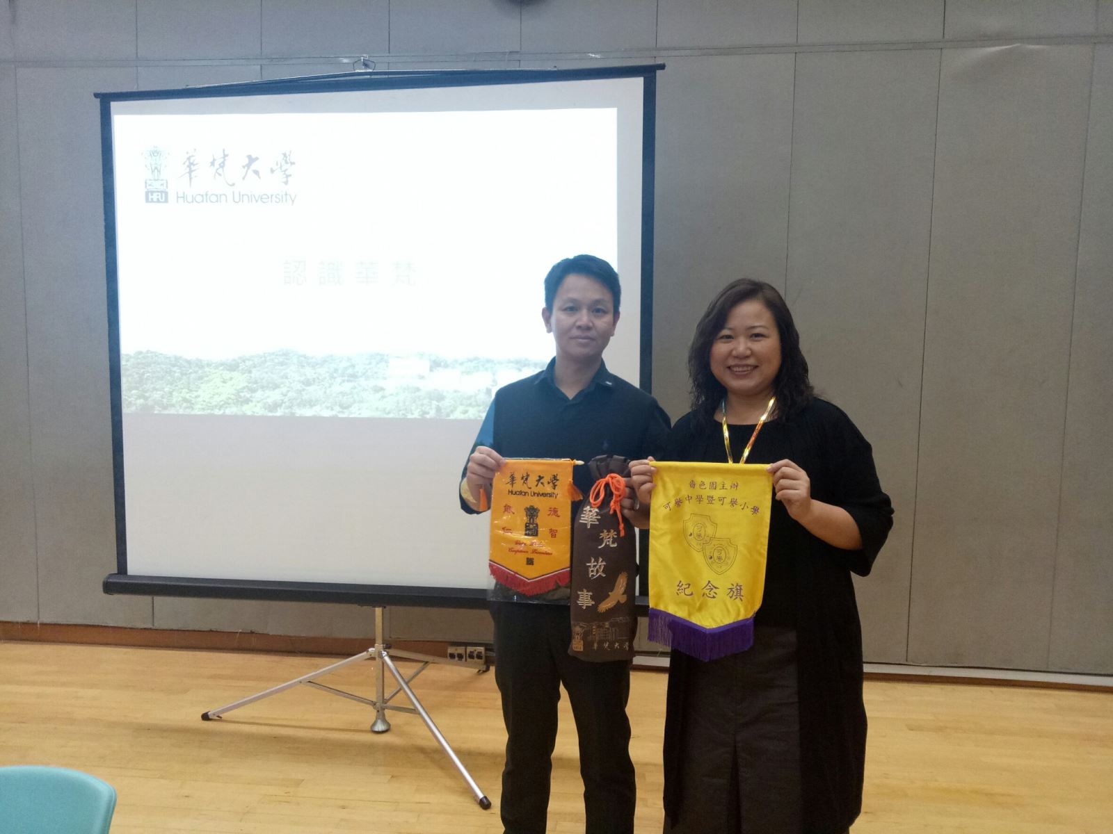 華梵赴香港鄺錫坤中學、可譽中學舉辦升學講座 為了加強境外招生,2017年10月22日至29日本校國際交流中心執行長金敏玲老師率團赴香港各高中進行升學講座及參加香港教育展。10月23日首先至鄺錫坤中學與可譽中學舉辦講座,參與同學反應熱烈。 金老師一行於10月23日上午首先拜會東華三院鄺錫坤中學升學輔導區少銓主任,並於該校大禮堂進行「華梵升學分享會」,對象為該校中五、中六學生約160餘位學生,工業設計學系的港生陳詩雅同學也分享其華梵所學感想;下午金老師等人拜會香港嗇色園可譽中學暨可譽小學麥敏潮副校長,並與該校升學輔導樊展君老師及余斐姬老師進行交流,也向該校中六學生約120位學生介紹華梵大學及分享華梵所學感想。 兩校學生分別對於華梵哲學、機電、電子及建築系表達濃厚興趣,金老師也為同學介紹各系特色,希望未來同學能選擇華梵就讀。