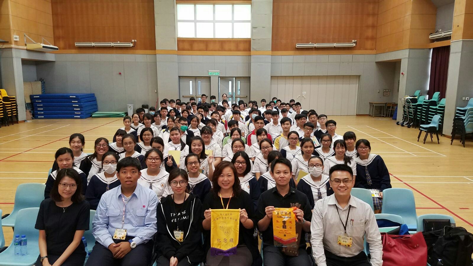 國際交流中心執行長金敏玲老師一行人與香港嗇色園可譽中學暨可譽小學師生們合影。