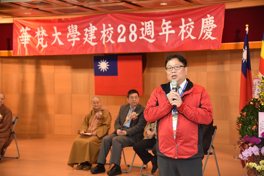 代表華梵資深教職同仁致詞的學務處課外活動組李宗明組長。