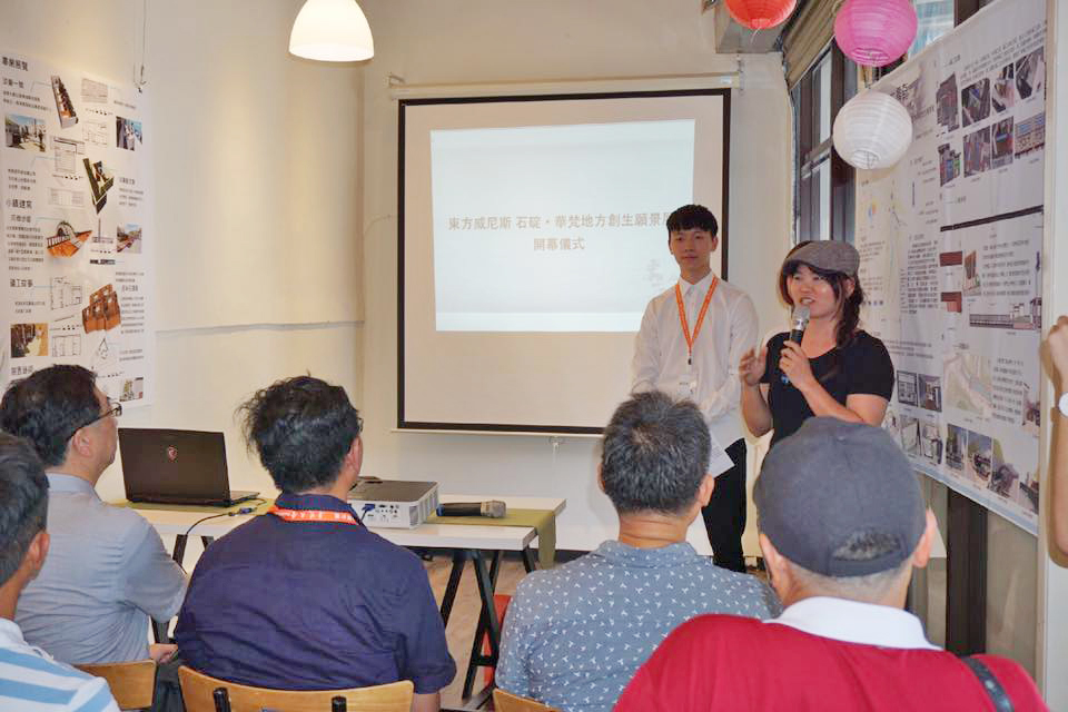 6月9日「東方威尼斯」開幕儀式在華梵大學蔡傳暉教務長、工程暨管理學院林智玲院長、教創中心何立智主任、環設系陳晉琪主任、石碇區公所社會人文課謝百奇課長、石碇社區發展協會白金川理事長、潭邊社區發展協會吳樹林理事長、前任潭邊社區發展協會理事長方錫淋先生、社區觀光發展協會林淑芳理事長、前任社區觀光發展協會理事長許仁評先生的合作下,一同拉起「地方創生樹」而揭開序幕,相當熱鬧。具有五種顏色的地方創生樹,「黃」代表陽光照射著石碇、「紅」代表青年們的青春活力、「紫」象徵堅韌不拔永不放棄的精神、「綠」是大自然的代表色、「藍」則代表石碇與水之間的關係,同時也象徵著川流不息;而圓圈則代表了華梵與石碇的緊密相連。