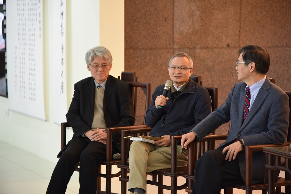 美術學系創系主任李蕭錕教授(中)推薦致詞,左為華梵大學高柏園校長。