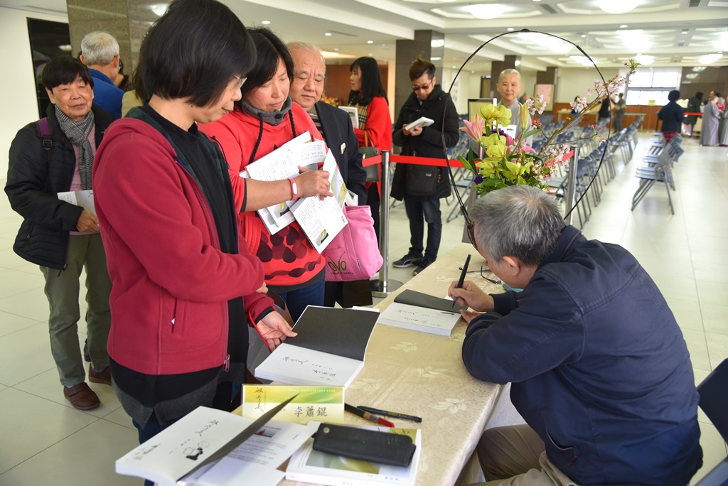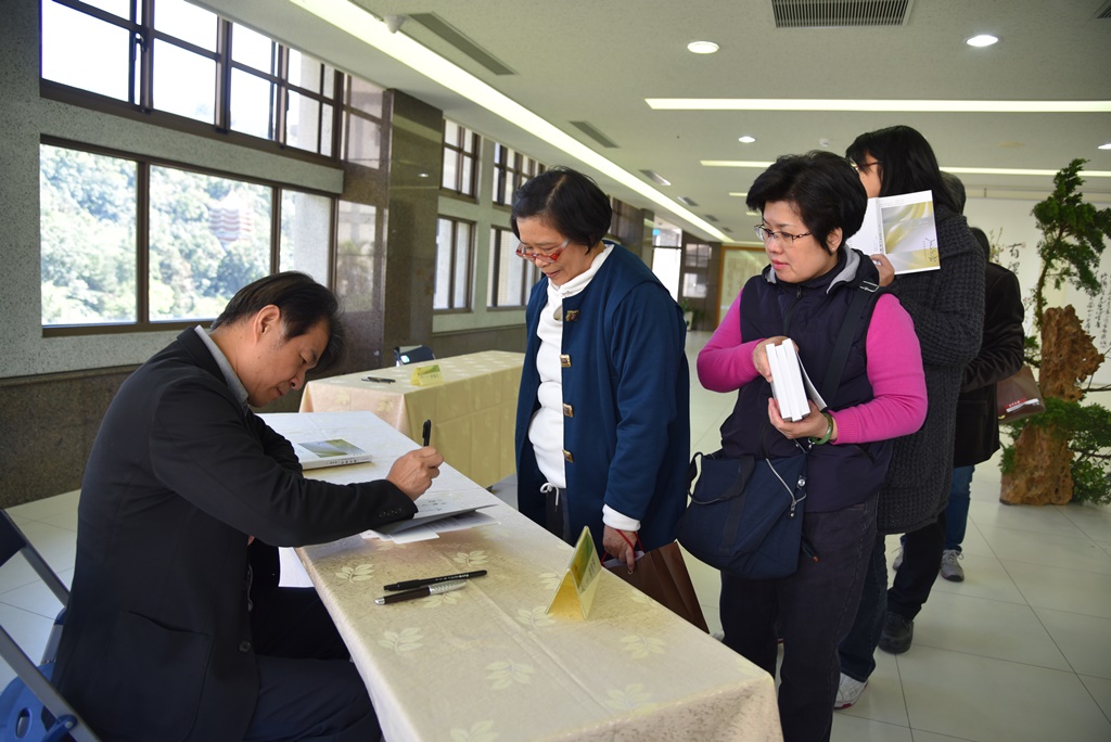 華梵大學藝術設計學院院長黃智陽教授現場為新書簽名留下墨寶