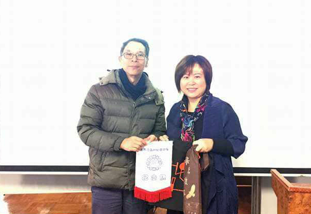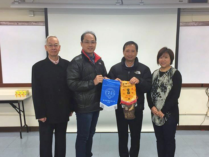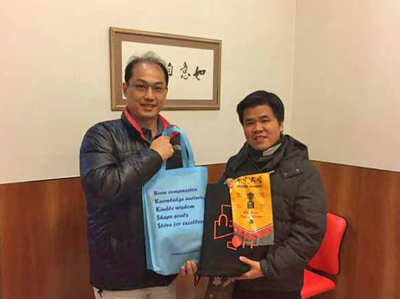 1月30日金敏玲執行長、黃明義學務長赴佛教孔仙洲紀念中學拜會吳美蘭老師(右二)、陳嘉寶老師(右一)。