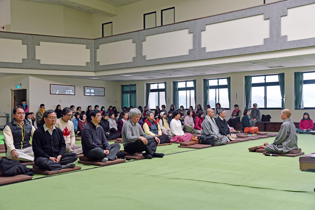 董事長悟觀法師指導教職同仁靜坐。