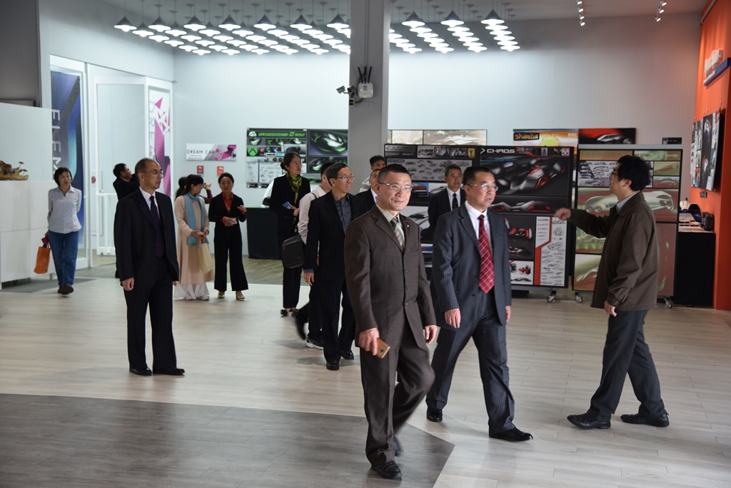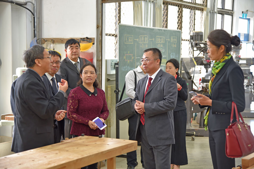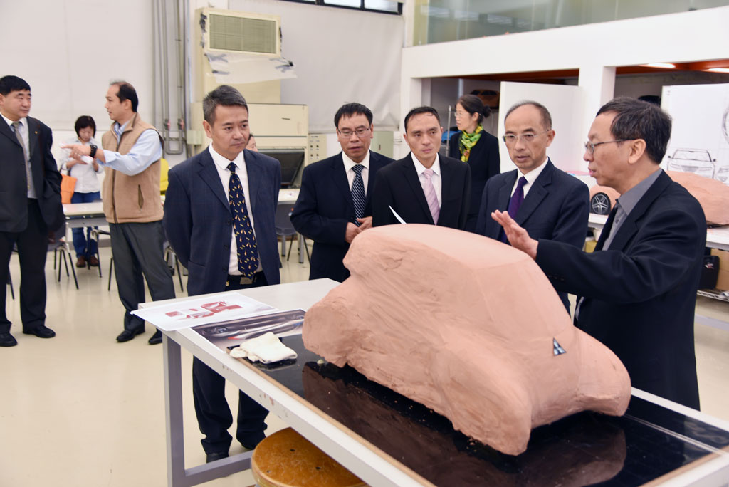 六盤水師範學院師長參觀工業設計學系交通工具設計組油土教室。