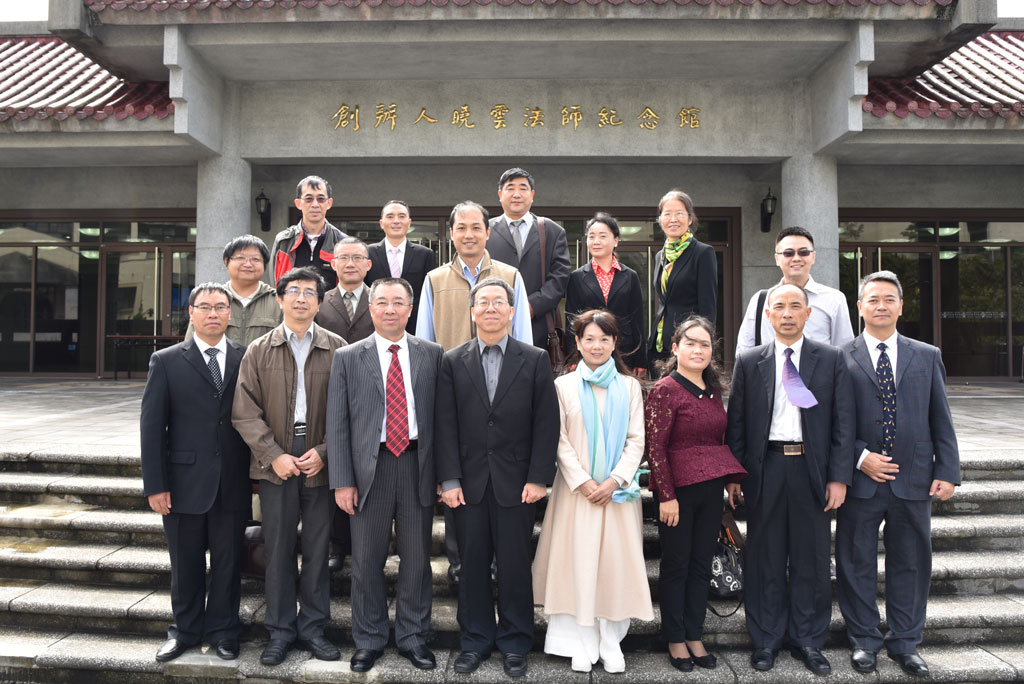 姊妹校大陸貴州六盤水師範學院師長一行10人,在蔣承雲校務委員會副主席率領下,於2017年11月6日蒞校參訪及交流座談,深入瞭解華梵之辦學理念、行政管理、教學安排、學生管理及後勤保障等,之後並參觀圖書館、創新實作中心(創客中心)及實習工廠等教學相關設施及同學上課情形,對於華梵在「覺之教育」辦學理念下,無論在教學創新、輔導弱勢同學之用心,皆表示高度肯定。