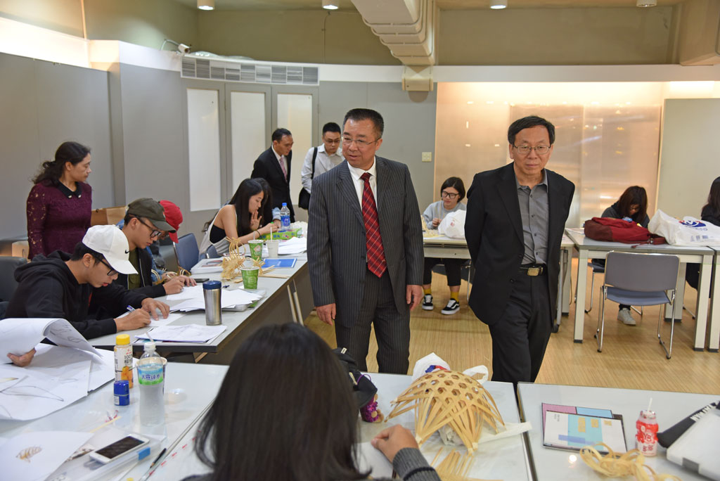 六盤水師範學院師長參觀工業設計學系同學上課情形。