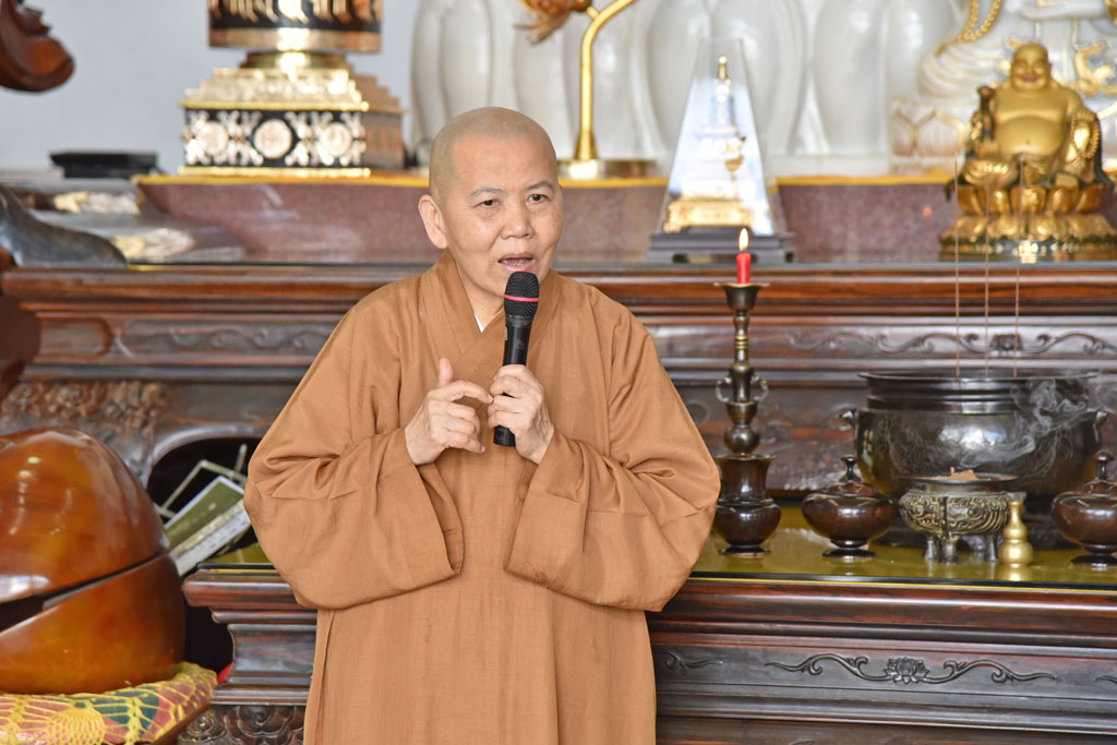 蓮華學佛園園長修慈法師於致詞時勉勵同仁,發揚創辦人「覺之教育」精神,努力在自己崗位好好辦學。