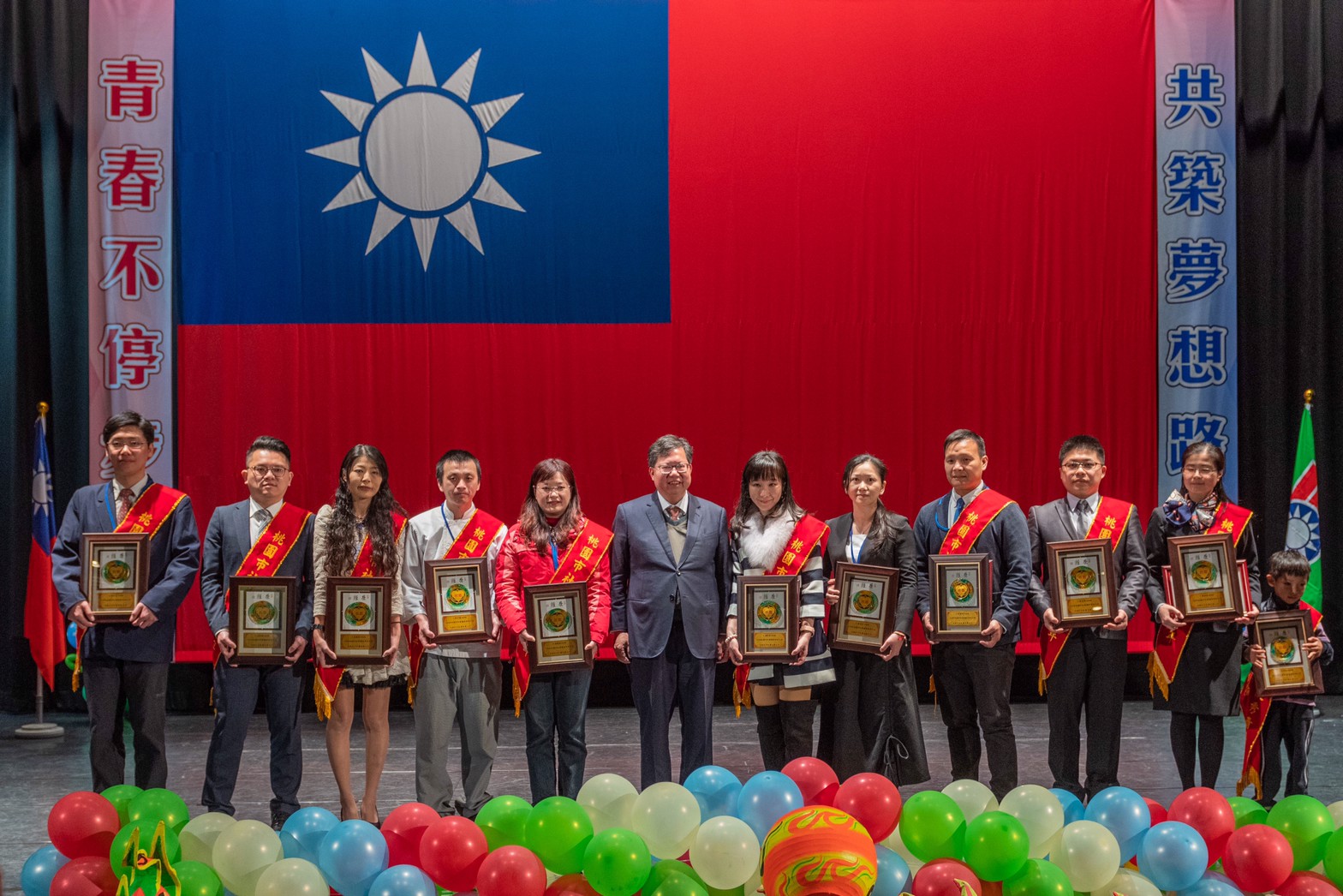 慶祝青年節,桃園市政府24日舉辦「桃園市慶祝108年青年節優秀青年表揚大會」,共計表揚了85位各領域的優秀青年,桃園市長鄭文燦親自頒獎表揚其中的「社會優秀青年」11位及「大專優秀青年」8位。