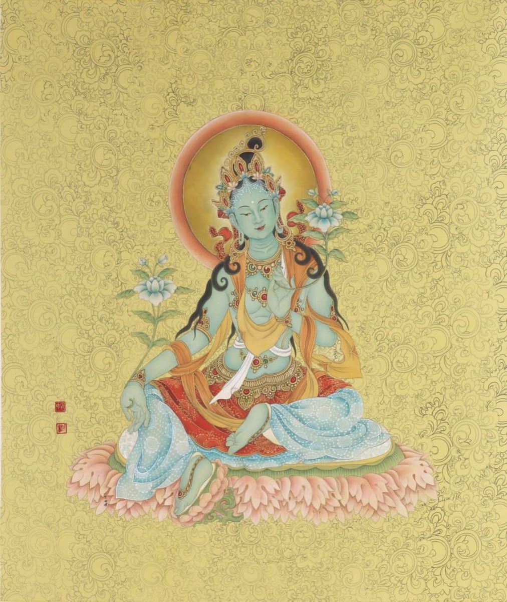 無曲即心-宋姸嫿彩墨畫展作品《綠度母》。