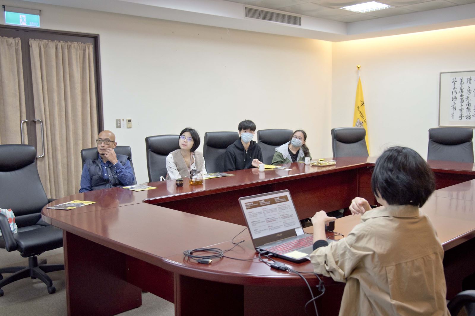 一行人第一站便前往華梵大學最優美景觀的圖資大樓五樓喝茶室,並在遼闊的山景中飲用熱茶及甜點,感受華梵校園的境教之美,心靈也獲得沉澱與放鬆。接著由華梵大學教學發展中心吳姿瑩主任為無界塾實驗教育機構的師生們介紹華梵大學自主學習實驗方案,並分享華梵大學自主學習學生的回饋心得。