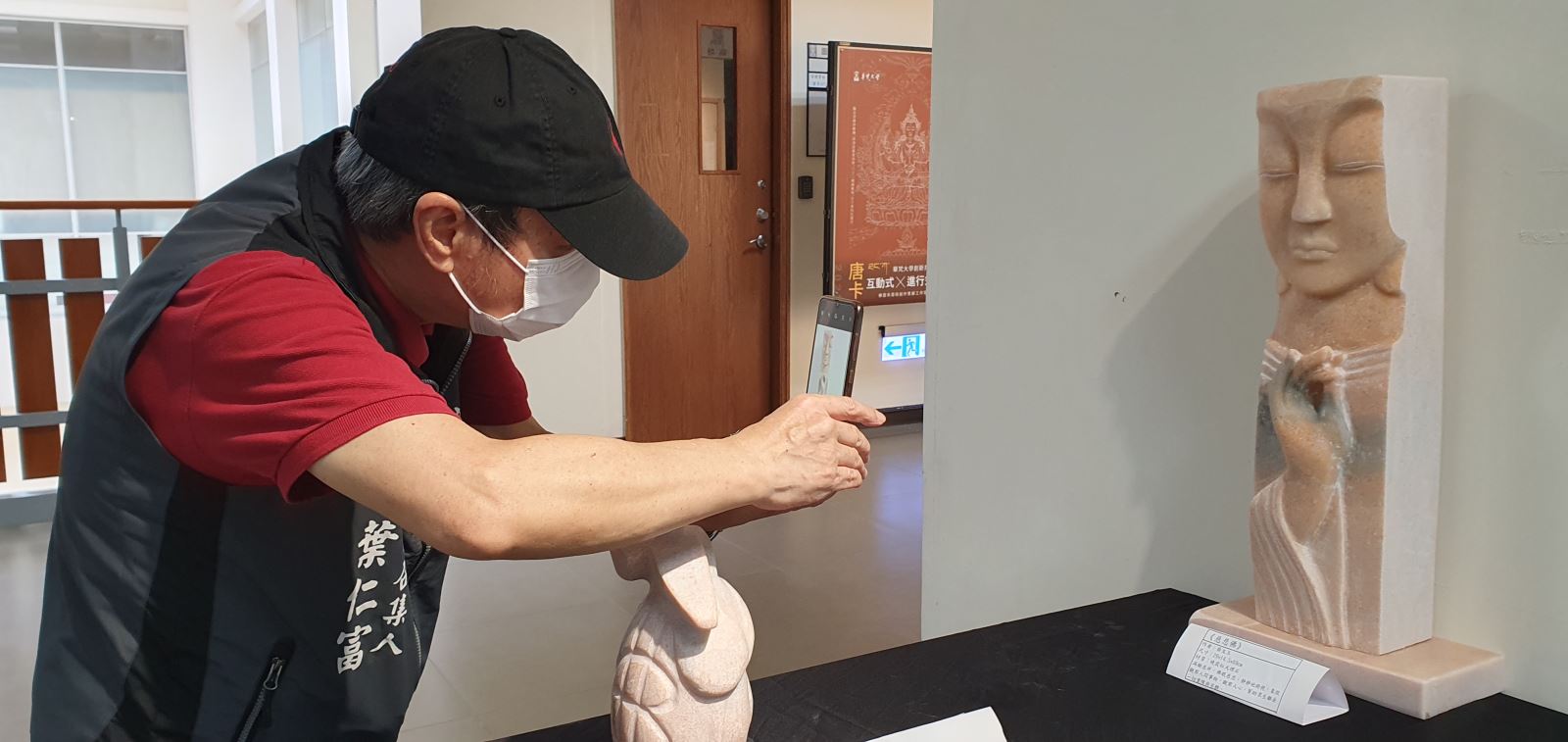 新北市新聞記者職業工會代表參觀華梵大學佛教藝術學系學生的石雕創作展。