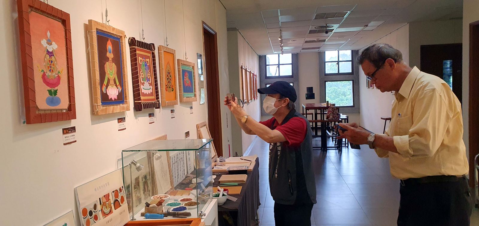 華梵大學佛教藝術學系唐卡創新共學展吸引了新北市新聞記者職業工會代表的目光。
