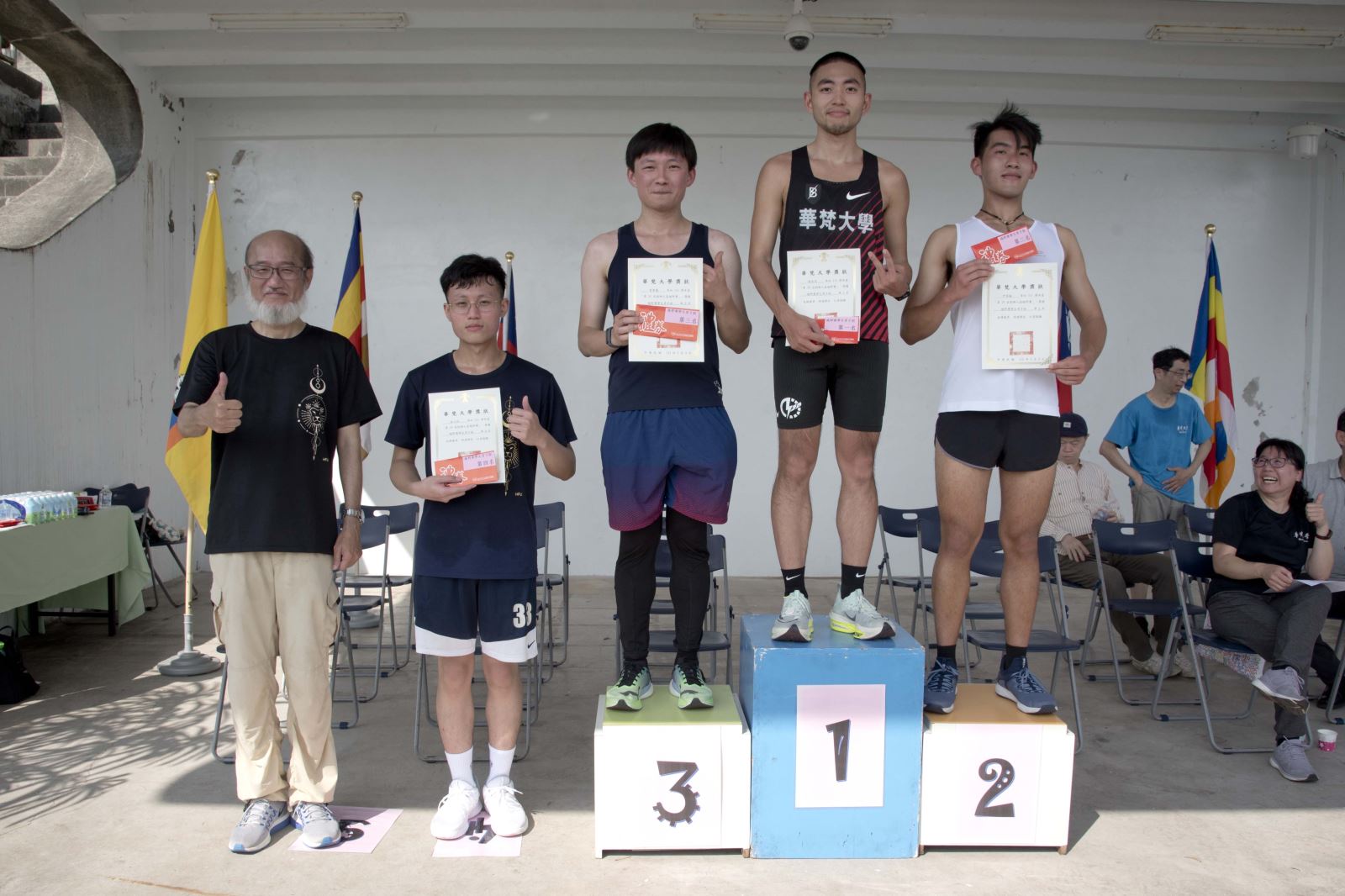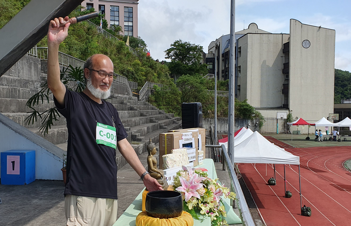 比賽開始前,先由Danny老師以幽默輕鬆的語氣帶領大家做熱身操,全場頓時沸騰起來;緊接著在林從一校長擊磬下正式鳴槍起跑,大夥不顧超過30度的高溫奮力往前衝,將華梵人的活力整個激發出來!