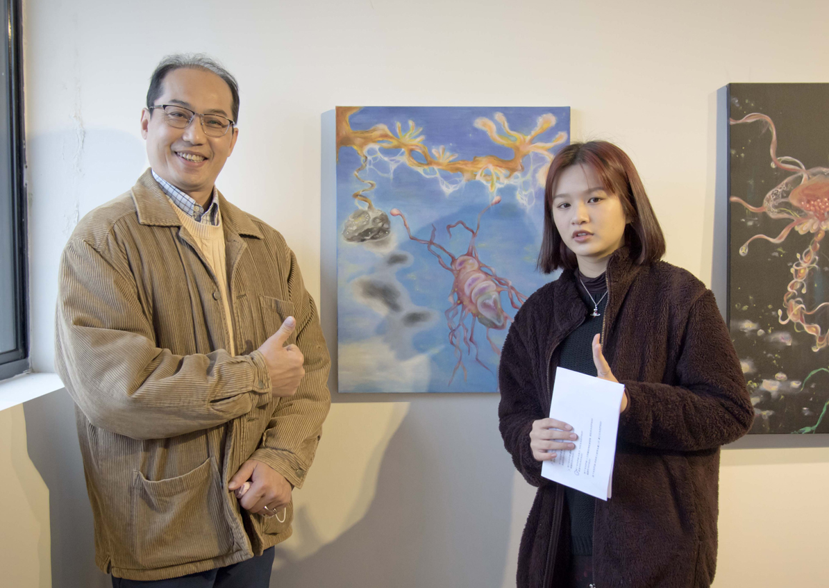 此次展覽的學生代表任詠晞同學及黃語絹同學說,很幸運學校能有這樣的藝術空間,讓身為大三的他們能夠為大四累積經驗,也在此次的展覽獲得很多經驗,很感謝師長們。
