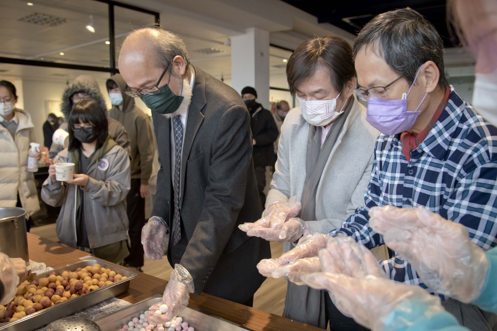 林從一校長(右三)帶領師長及同學於現場搓湯圓。