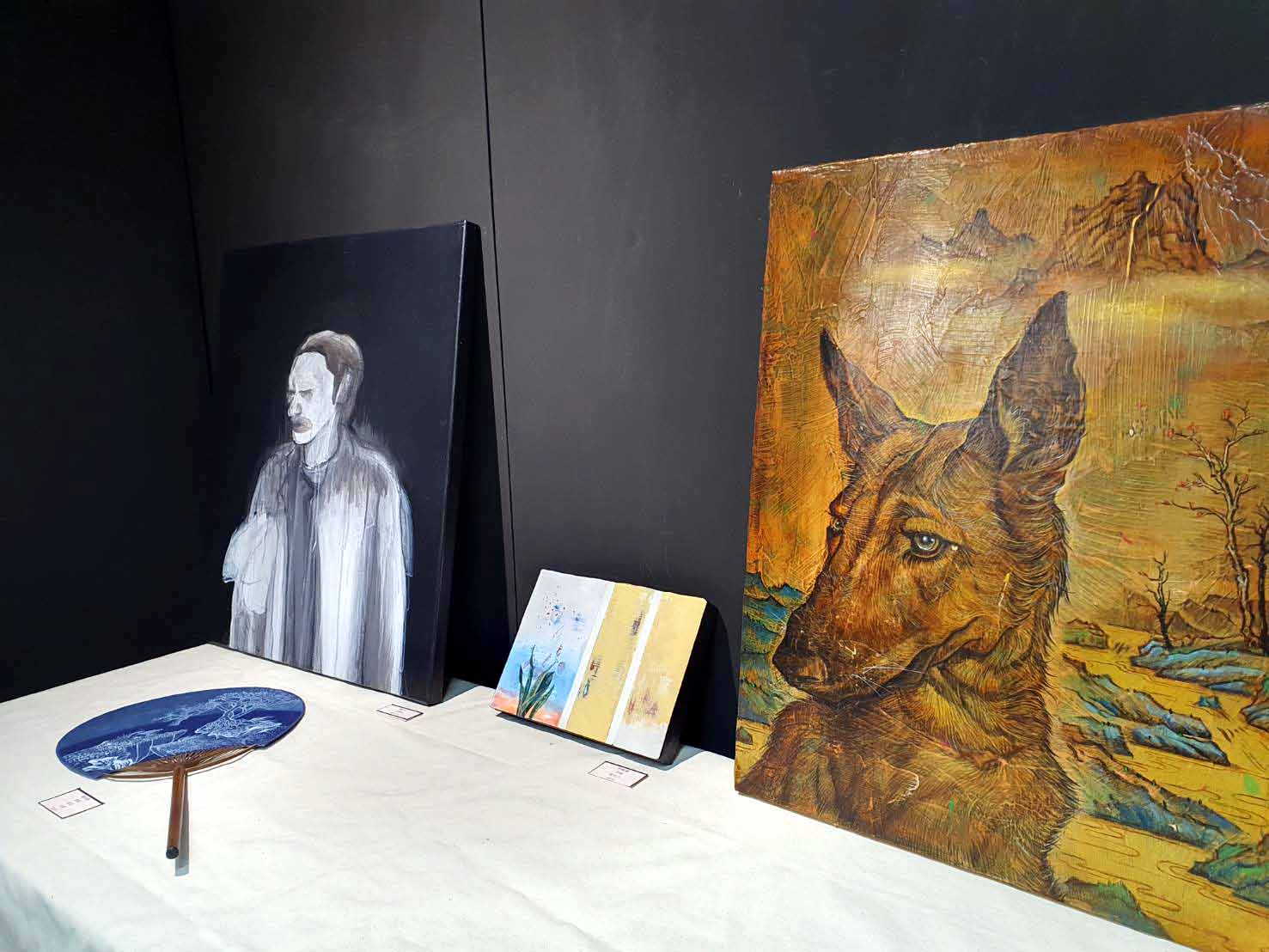 在黃智陽院長的藏品中,學生的作品就占了很大一部分;例如會場展出華梵大學校友段立璿的畢業展作品,就是因為當初擔心段立璿畢業後的生計,在段立璿一句「老師,要不要乾脆將我的作品買下?」的開玩笑詢問下,黃智陽院長竟然二話不說立即答應,結果一收藏就是十年光陰。