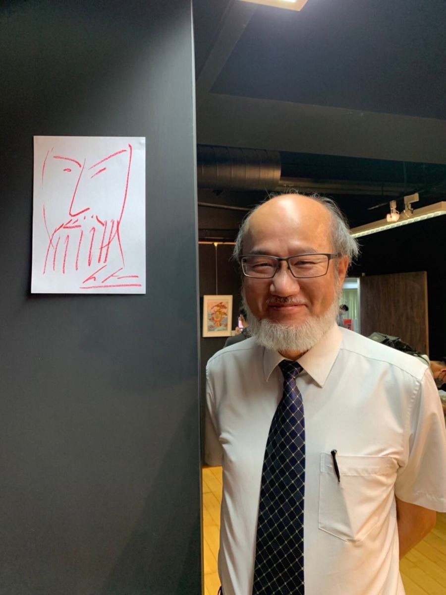 華梵大學林從一校長於現場互動區繪製自畫像。