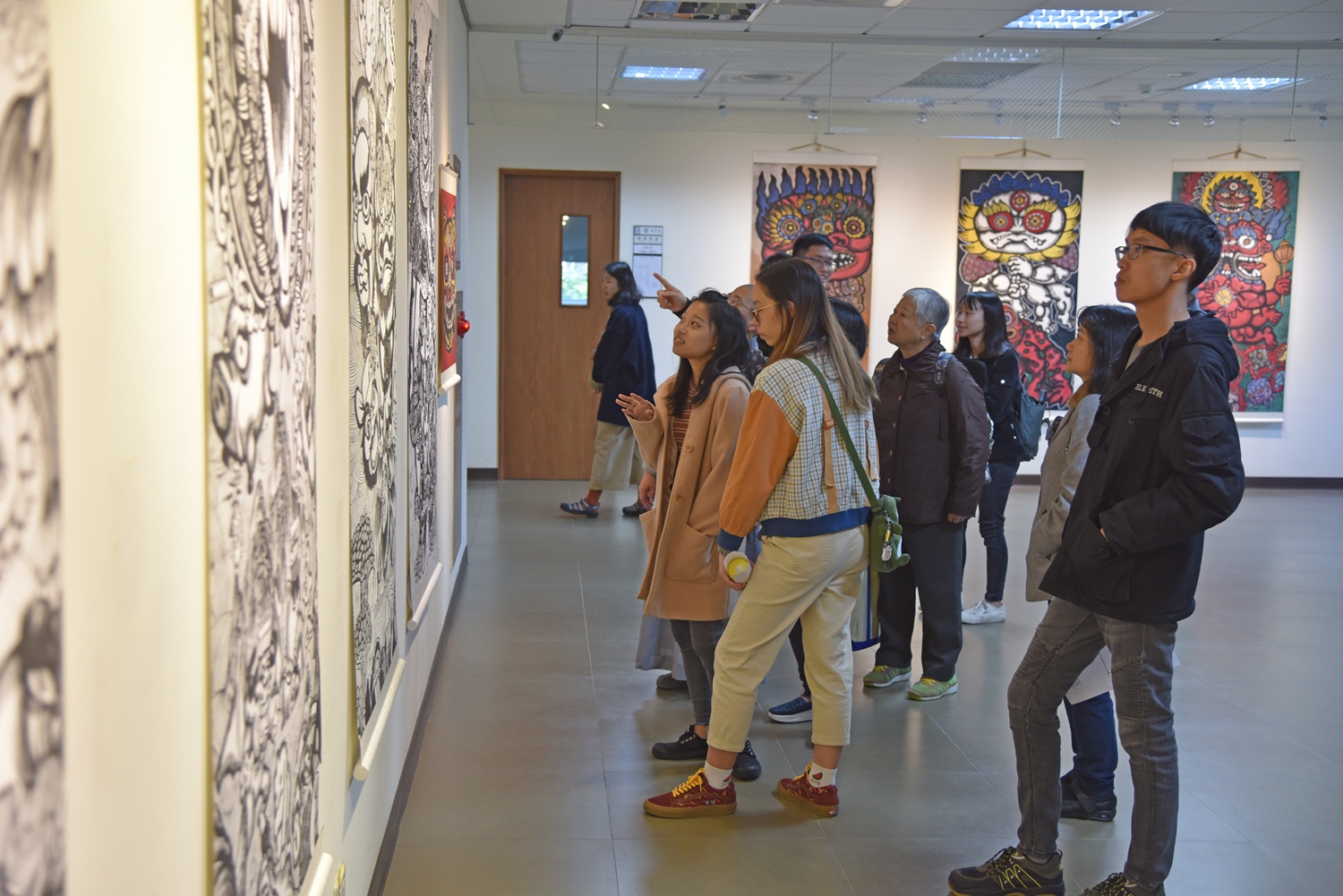 最近走進華梵大學圖書資訊大樓的師生,都會被懸掛在牆上一整排威猛有力、虎虎生風的巨大神獸創作所吸引,忍不住停下腳步仔細端詳,殊不知創作者竟然是一位個頭不高且長相斯文的小男生。當大眾聽完他的創作故事後,無不嘖嘖稱奇,對他的藝術爆發力讚賞不已。