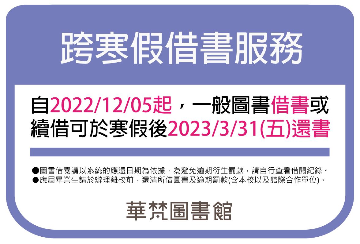【華梵圖書館】111學年度跨寒假借書服務說明