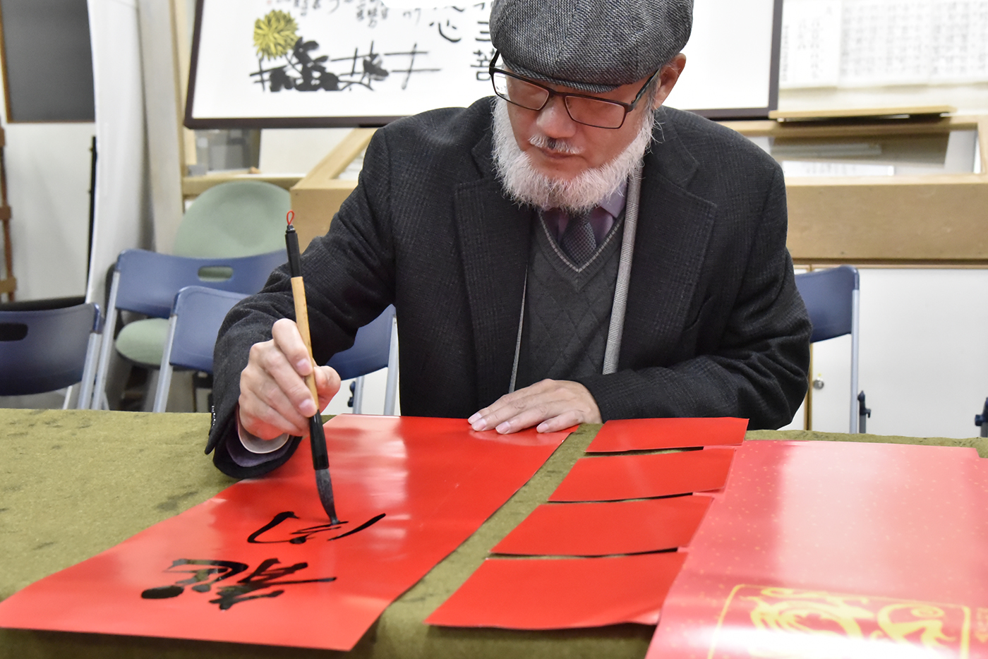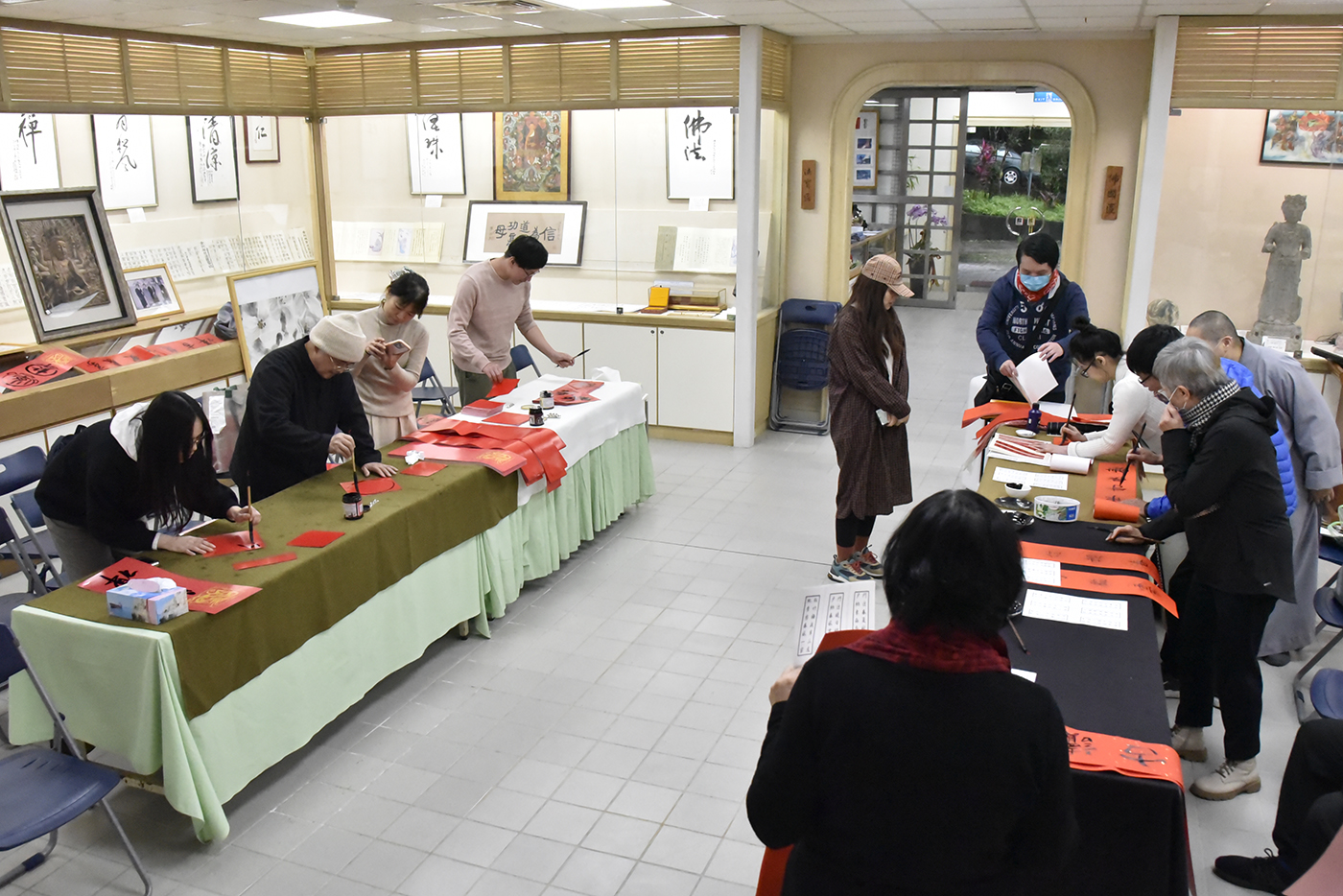 書法名家吳大仁老師與學生一同春聯揮毫。
