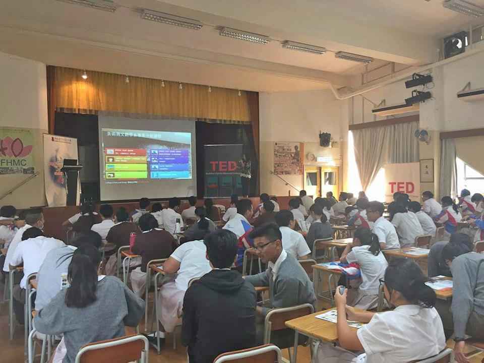 下午金老師一行前往筏可紀念中學,與80位中六同學舉辦升學講座。筏可紀念中學致力發展多元化課程,照顧不同能力及志趣的學生,與本校所推動的不分系產業學程不謀而合,讓同學明白前往臺灣學習,不只能學習藝術專業,更能選修其他系課程,培養成為藝術行政人員或是具有多專長的才能。