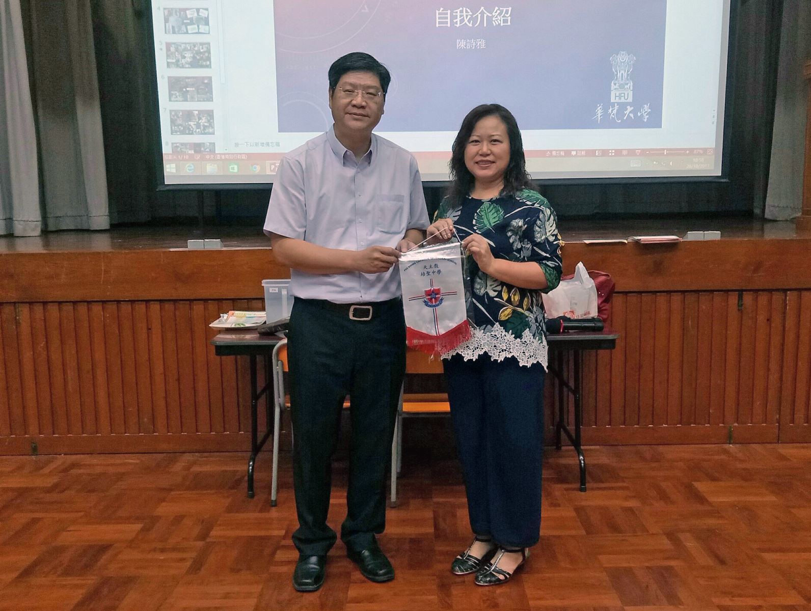 國際交流中心執行長金敏玲老師(右)、天主教培聖中學冼萬勝副校長(左)。