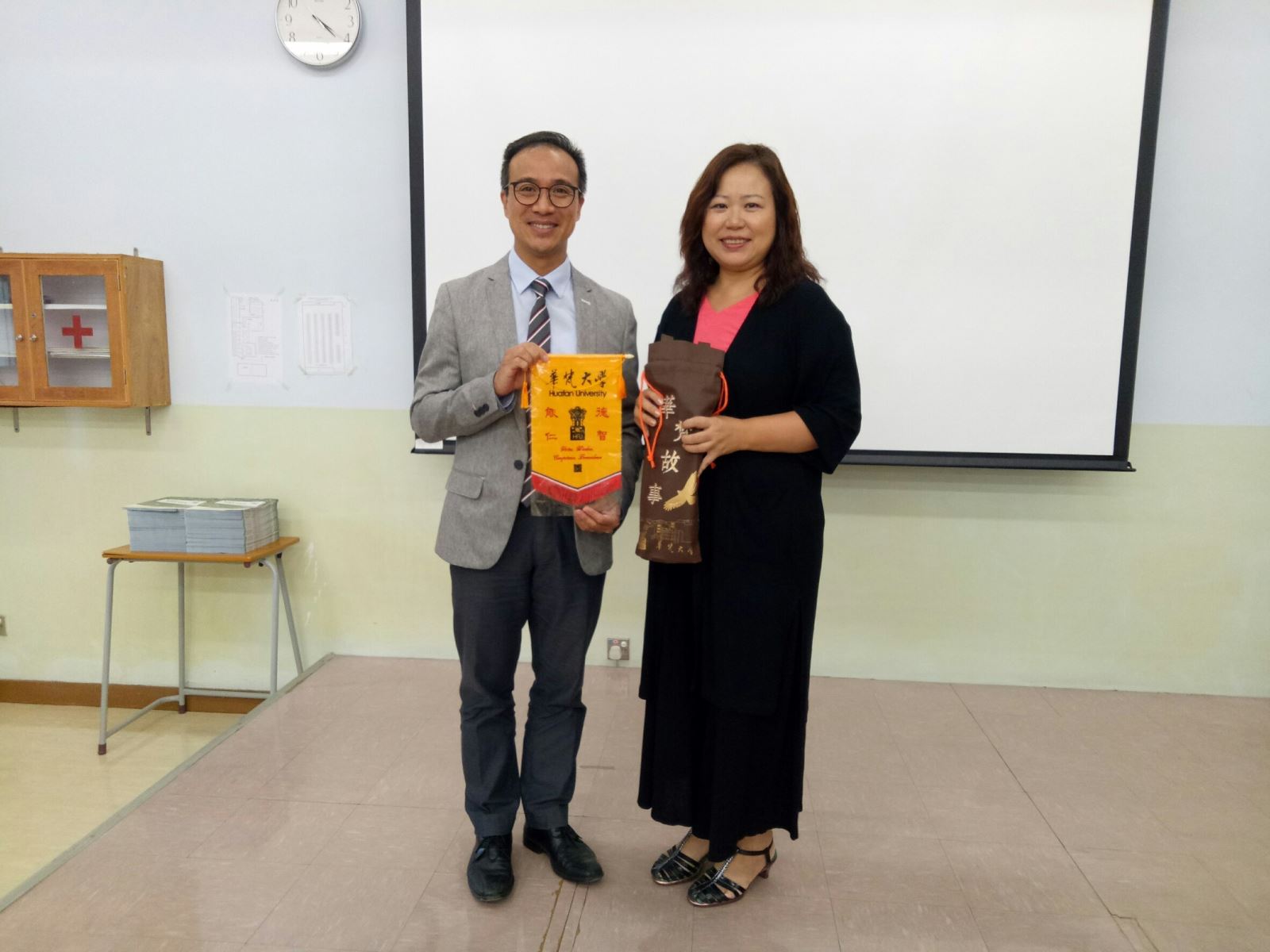 國際交流中心執行長金敏玲老師(右)、佛教葉紀南紀念中學蘇家樑校長(左) 。