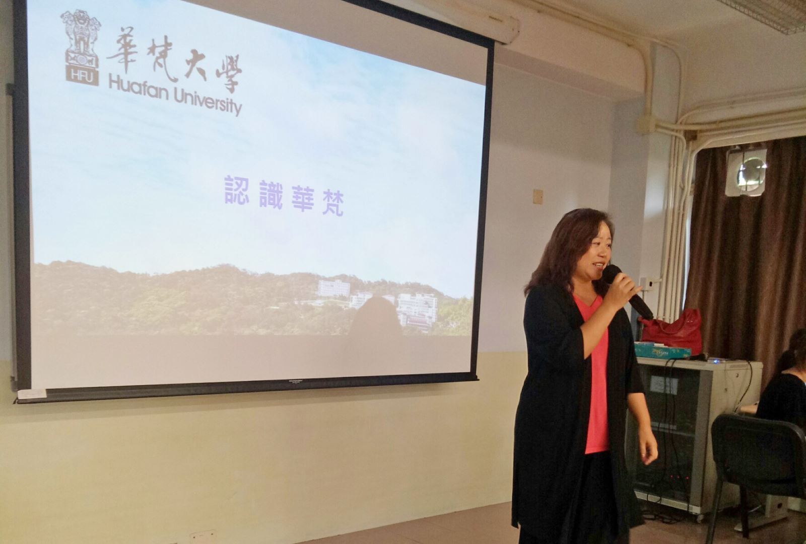 國際交流中心執行長金敏玲老師在香港佛教葉紀南紀念中學進行座談會。
