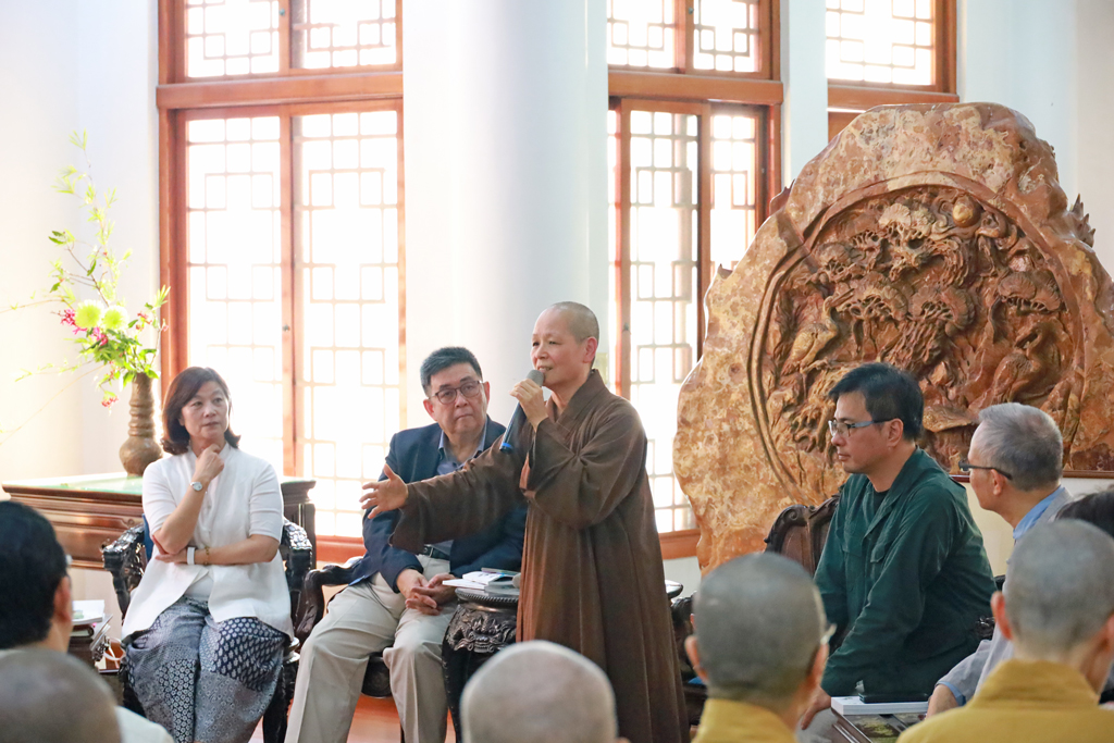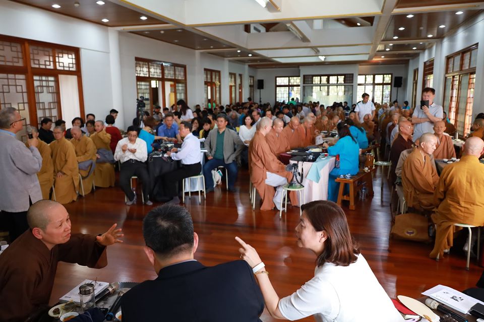 高雄深水觀音禪寺舉辦「覺之教育——看見自己」及新書《法華經者的話》座談茶席,現場座無虛席。