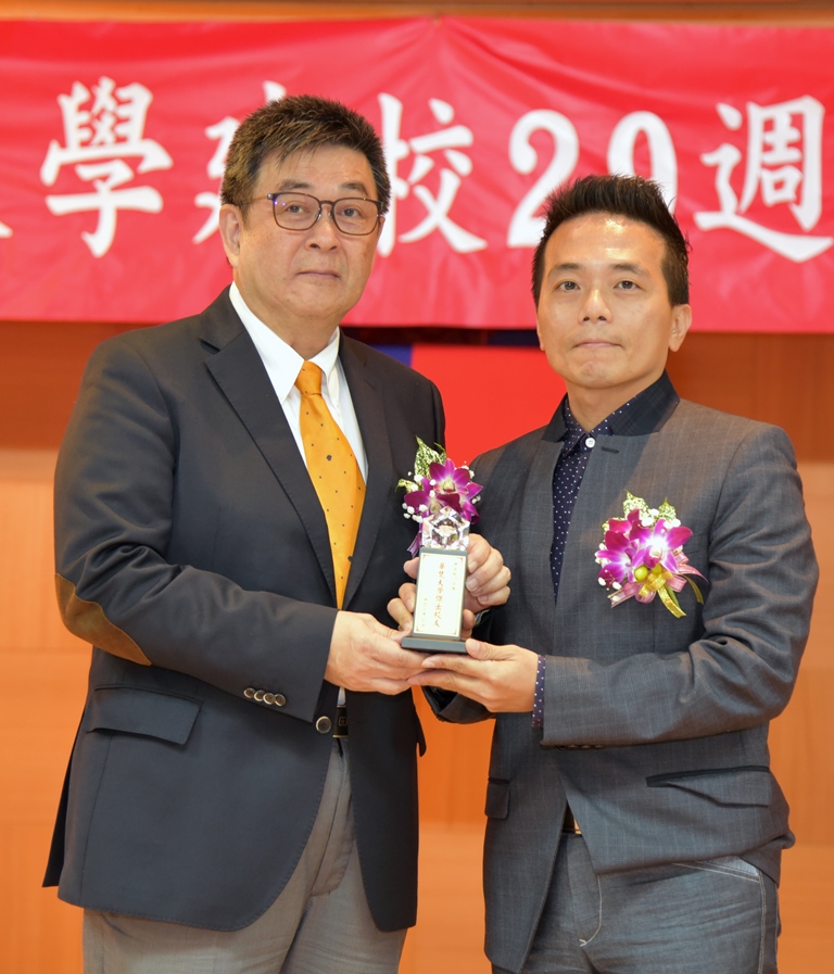 李校長(左)頒發華梵傑出校友獎給中國文學系唐偉展校友。
