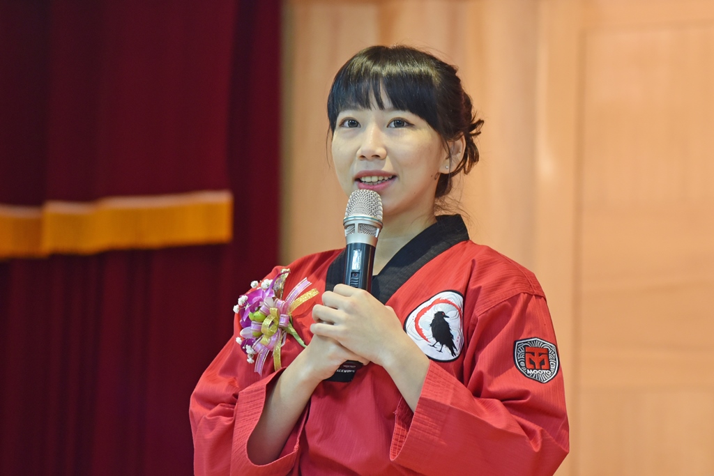 身穿紅色跆拳道服上台領獎,成為全場最吸睛的亮點,陳又瑜感性的說,進大學之前,她不知道自己未來能做什麼,如果沒有華梵,可能終其一生就只是個跆拳選手,更不會想要創立跆拳特技舞團;但在華梵校園裡,她感受到無比的平靜與穩定,有許多時間與自己對話,尤其修了「海賊王哲學」這門課之後,更加了解自己未來想做什麼,能逐夢踏實的往前挺進。