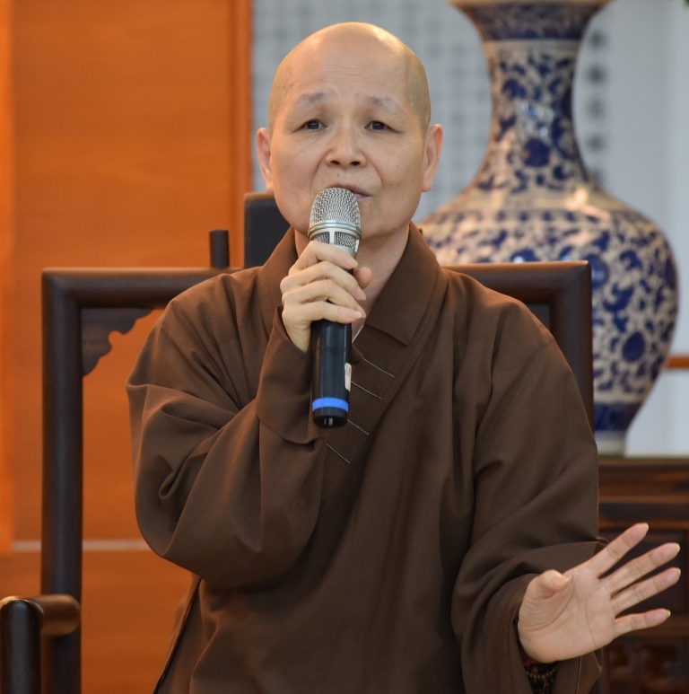 董事長悟觀法師分享自己的創作歷程時表示,佛法一定要在生活中一步步慢慢領受,而「法華經者」就是「如來使」,「如來使」的菩薩道皆行在生活中,以身口意行在人世間,開示悟入佛知見即是《法華經》的重點。