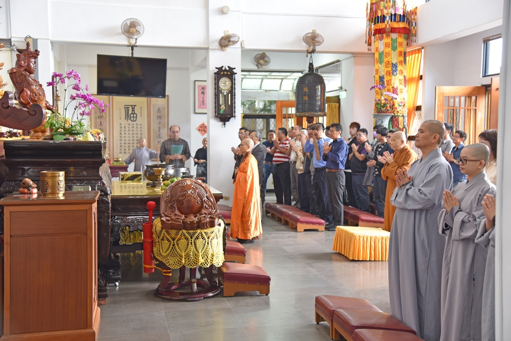 全校教職員前往慈蓮苑蓮華學佛園,向曉雲導師捻香致敬。