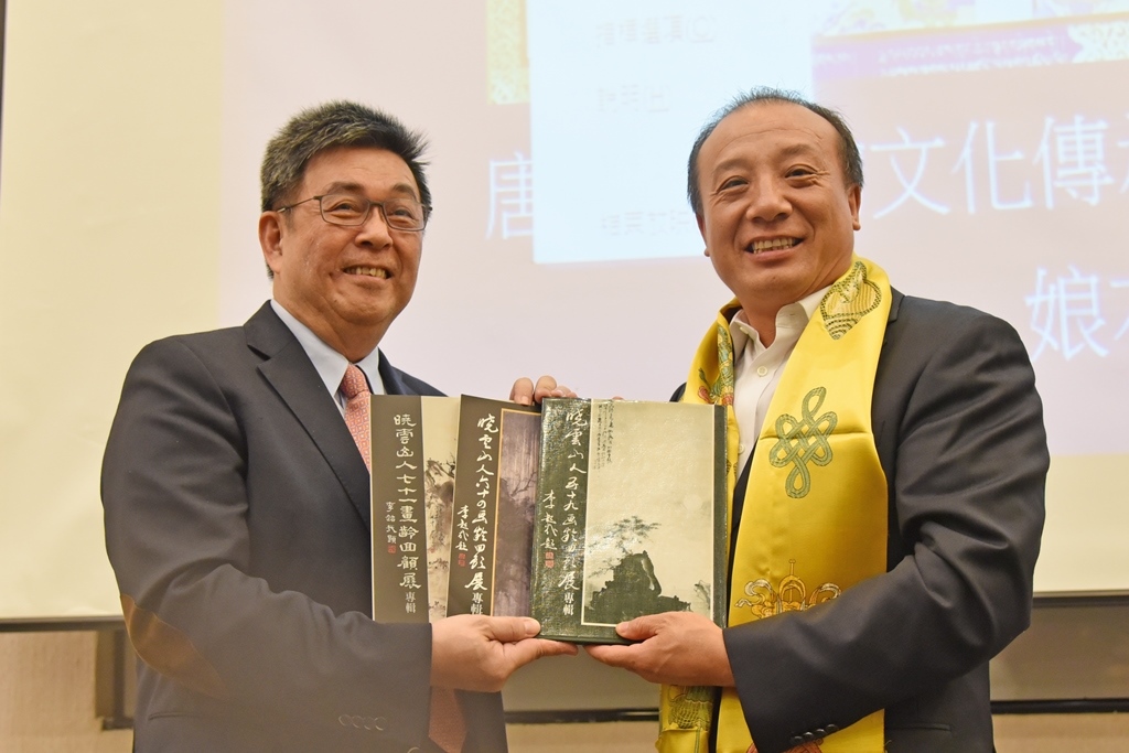 李天任校長代表華梵禮聘娘本院長為榮譽特聘講座教授,雙方將展開多項教學合作與出版計畫,讓深受好評的熱貢唐卡藝術在臺灣開花結果。他並致贈人文與藝術學院黃智陽院長的親筆畫作給娘本院長,同時代表悟觀董事長致贈創辦人曉雲法師畫冊集,令娘本院長相當歡喜。