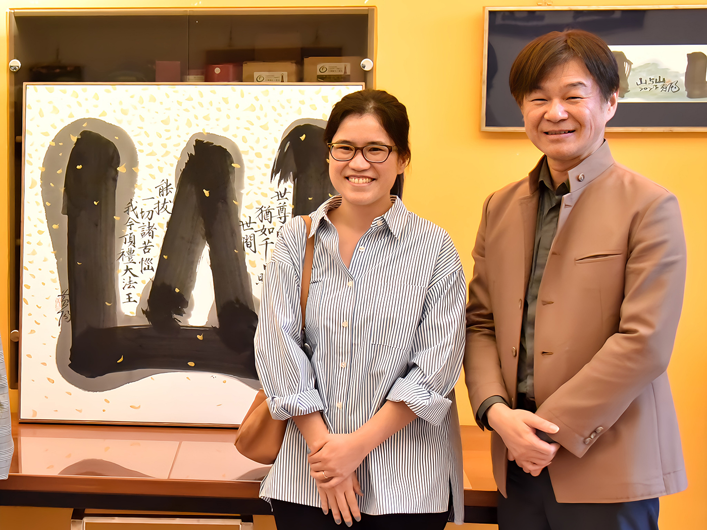 美國康乃爾大學助理教授高新綠(左)感謝書法啟蒙恩師黃智陽教授。