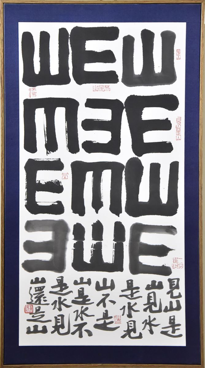 書法創作大突破,既能結合流行歌曲、變身視力表,還能將思想應用在穿戴科技中;華梵大學主秘兼人文與藝術學院院長黃智陽「山與山」書藝創作展10日盛大開幕,藝文界嘉賓雲集,以貼在皮膚上的穿戴式科技一舉成名的美國康乃爾大學教授高新綠也特地前來參加,讓人見識到書法藝術強大的跨域性與融合力。