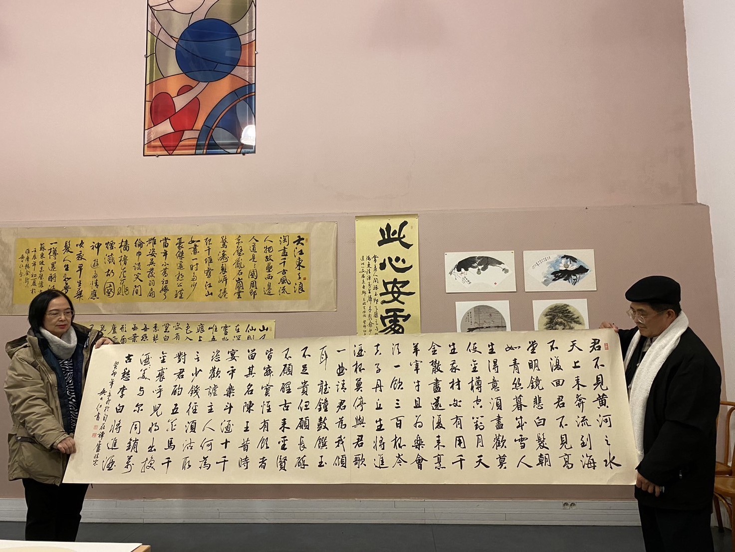 而吳大仁老師的水墨創作展,也在阿黛兒協會招待中心畫廊空間展出,他特別越洋帶來20多件東方書畫作品布置其中,中西合壁、古今交錯的陳設,交織出獨特的文化美學。