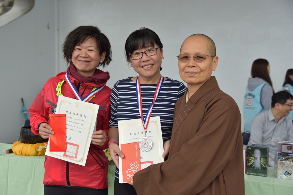 教職員女子組前三名:圖資處陳麗平女士、圖資處張簡雅文女士。