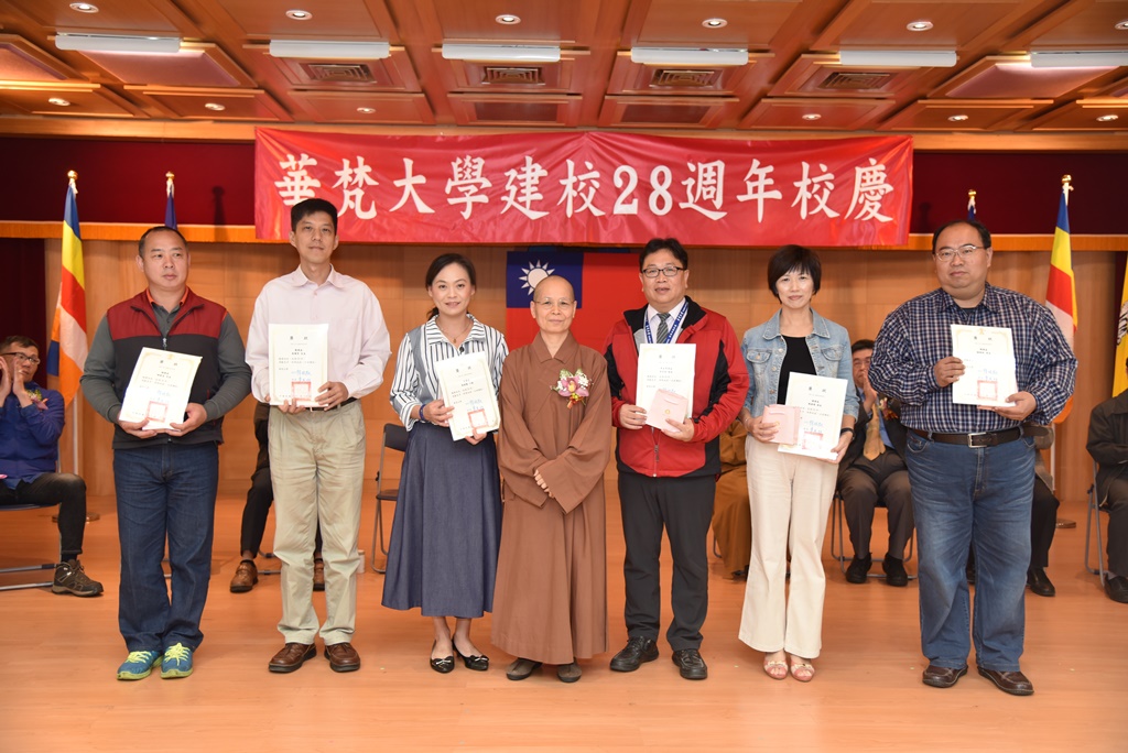 典禮中並頒發服務華梵大學滿20週年、10週年資深教職同仁服務獎及華梵傑出校友獎。服務華梵大學滿20週年資深教職同仁服務獎,包括:學生事務處李宗明組長、總務處陳靜瑤組長、總務處楊朝欽組長、文學院蘇韶儀小姐、總務處林毅呈先生、教務處趙國智先生。