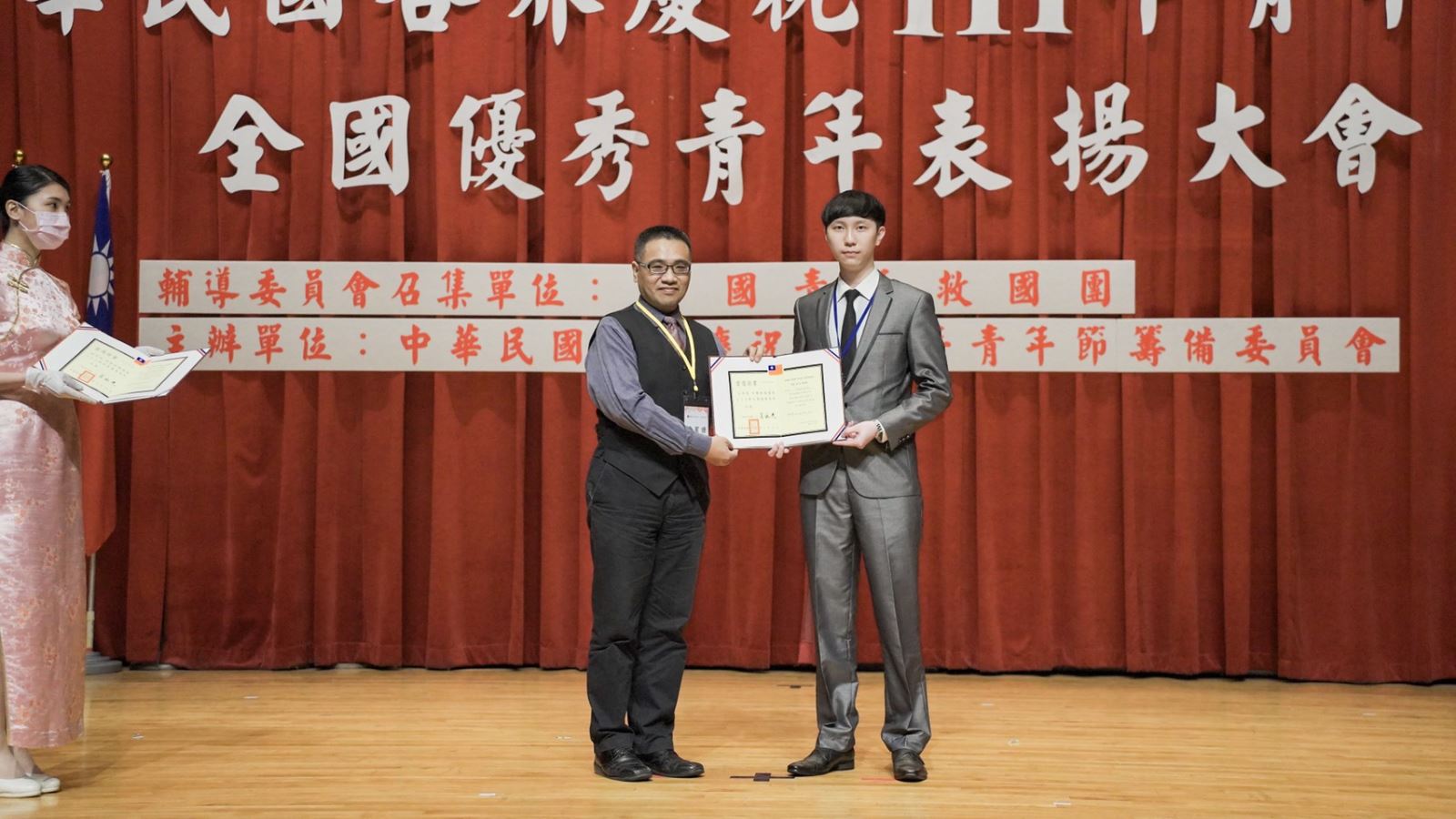 華梵大學哲學系四年級王沛恩同學於3月29日青年節當天,榮獲111年「全國大專優秀青年」的最高殊榮,並在救國團舉辦的表揚大會上接受表揚,為校爭光。