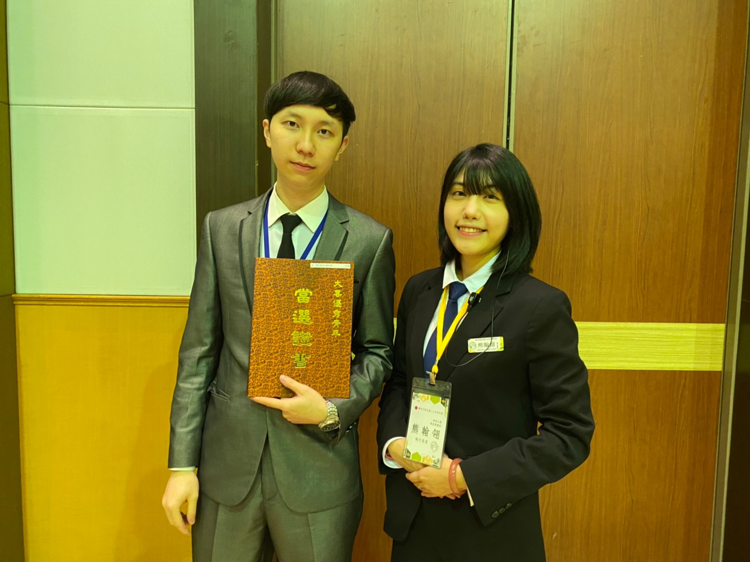 華梵大學哲學系四年級王沛恩同學(左)與擔任青年節籌備委員會執行委員華梵大學建築學系熊翰翎同學合影。