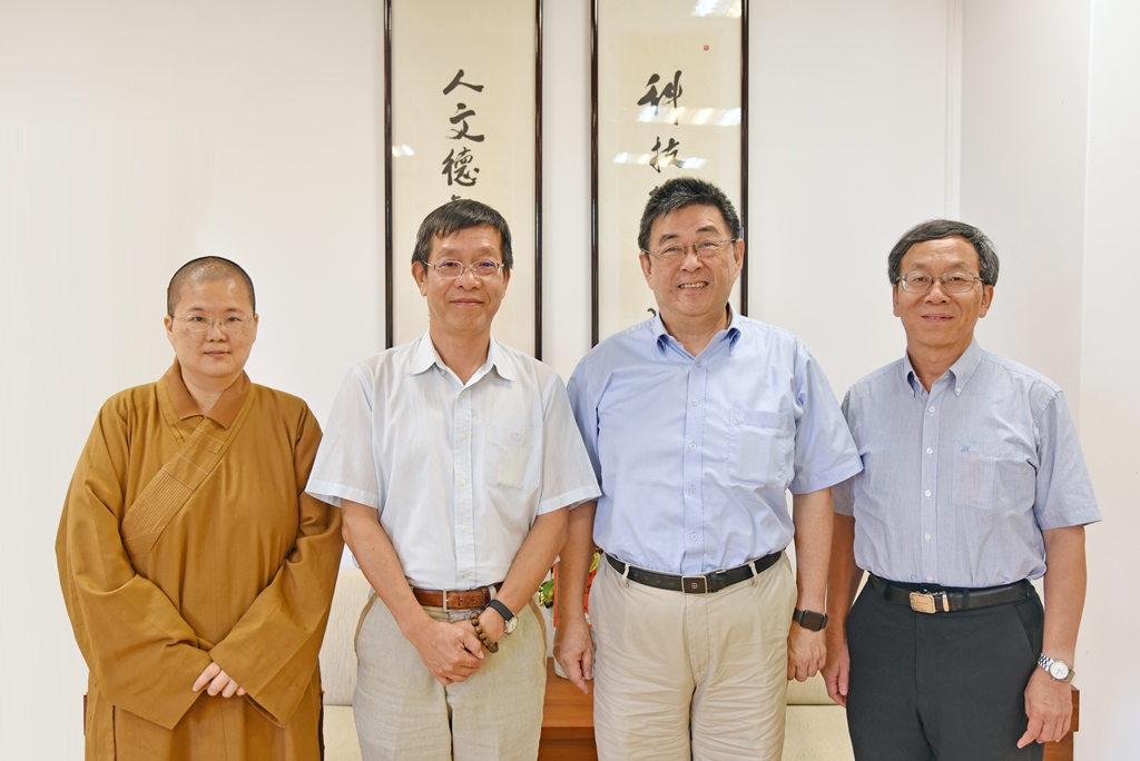 (左至右)佛光大學董事會釋有真秘書、佛光大學許文傑主任秘書、李天任校長及簡江儒主任秘書。