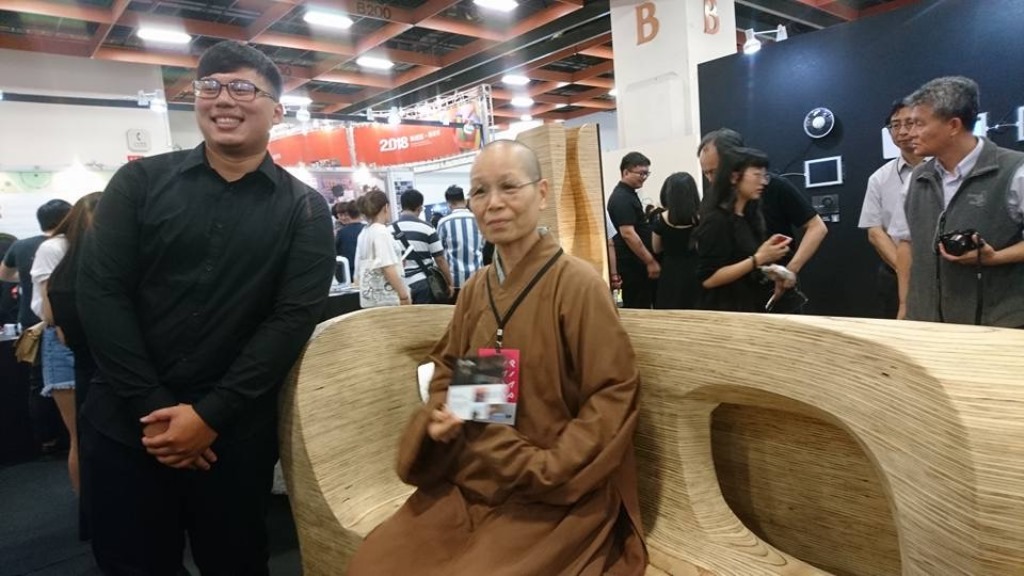華梵大學工業設計學系畢業展「度」,參與了107年5月25日至28日在台北世貿舉辦的「新一代設計展」。董事長悟觀法師(中)、蔡傳暉教務長(左二)及工業設計學系多位師長特別於5月27日至會場為同學加油打氣。