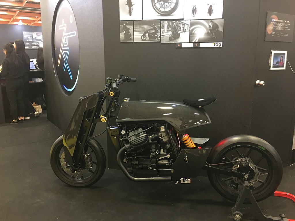 交通工具設計組同學作品,可以真正駕乘的二輪摩托車。 華梵大學工業設計學系畢業展「度」,各組作品表現皆頗具水準,許多人駐足詢問,攤位人氣十足!