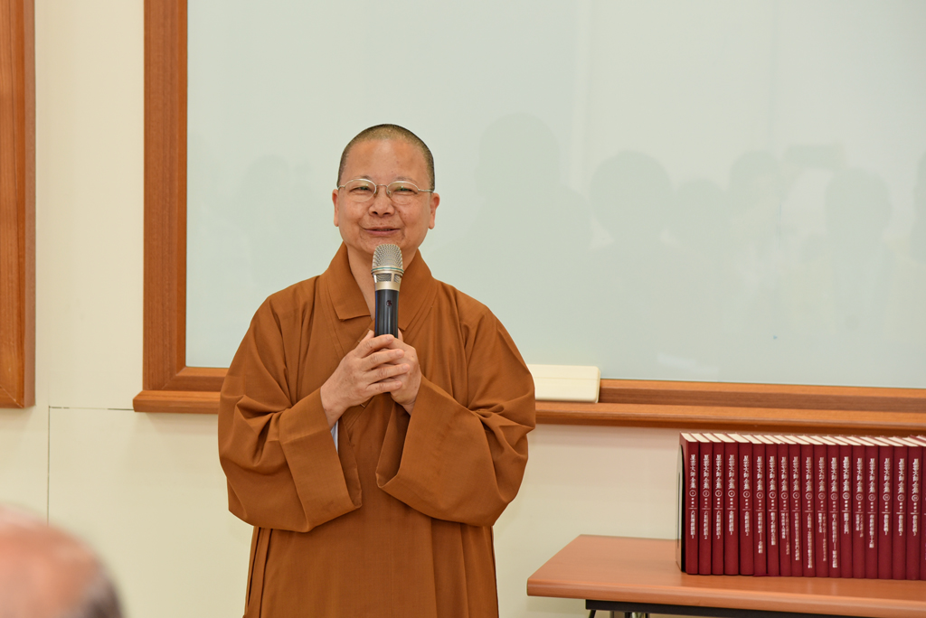 師長貴賓參觀放置在圖書館一樓參考室的《星雲大師全集》。