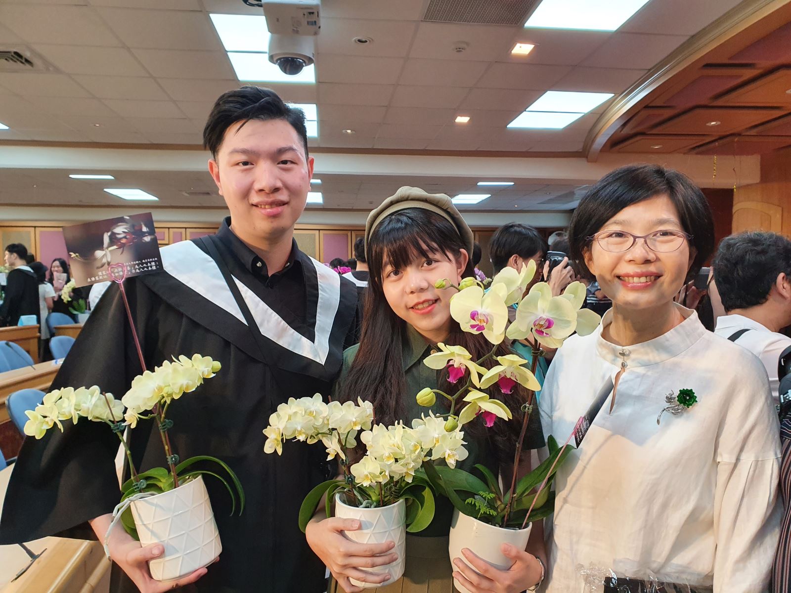 工設系畢業生許詠竣同學(左)榮獲「校長特別獎」,家人特地前來祝賀。