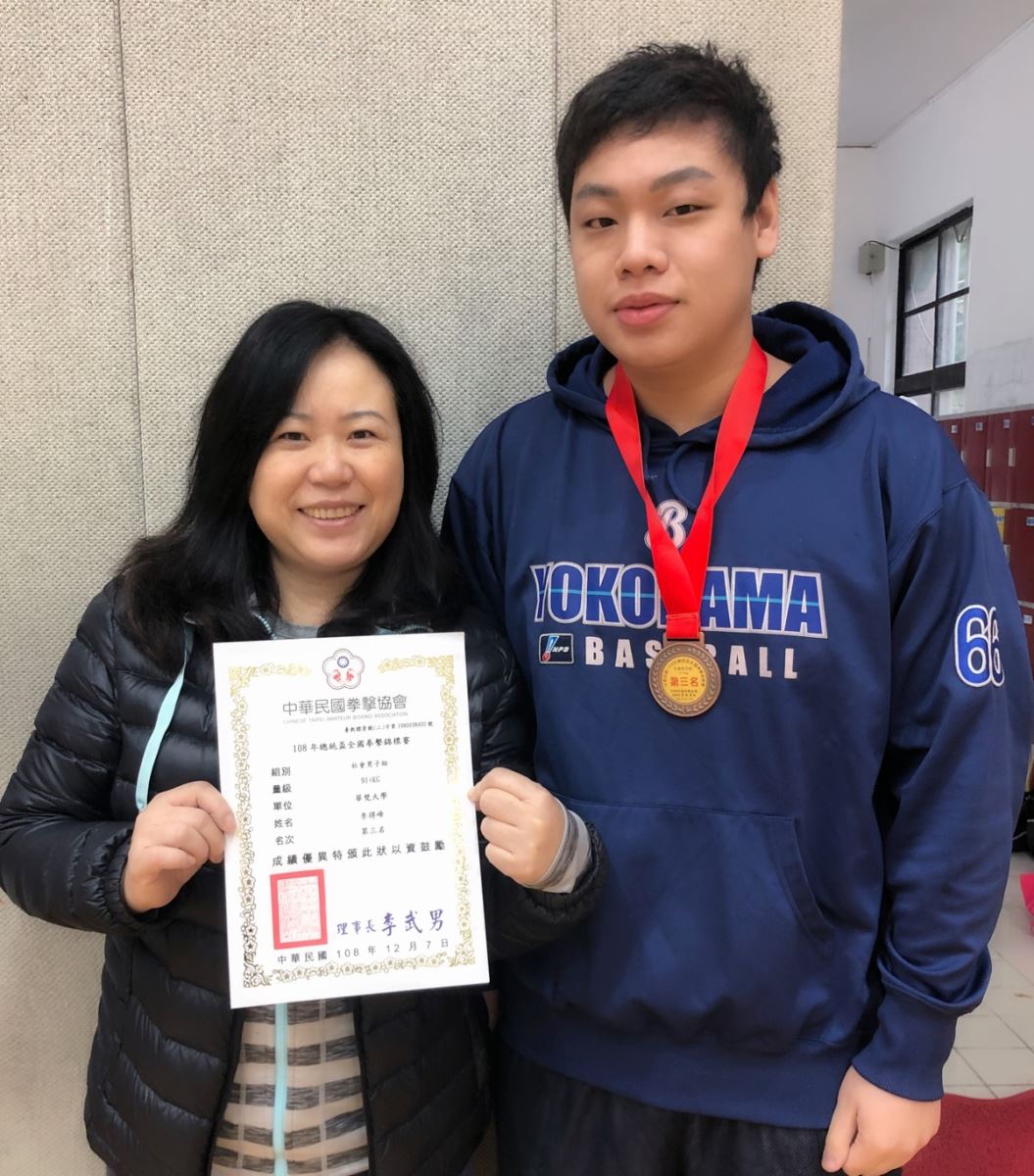 工業設計學系二年級李得峰同學榮獲108年總統盃拳擊錦標賽第三名。
