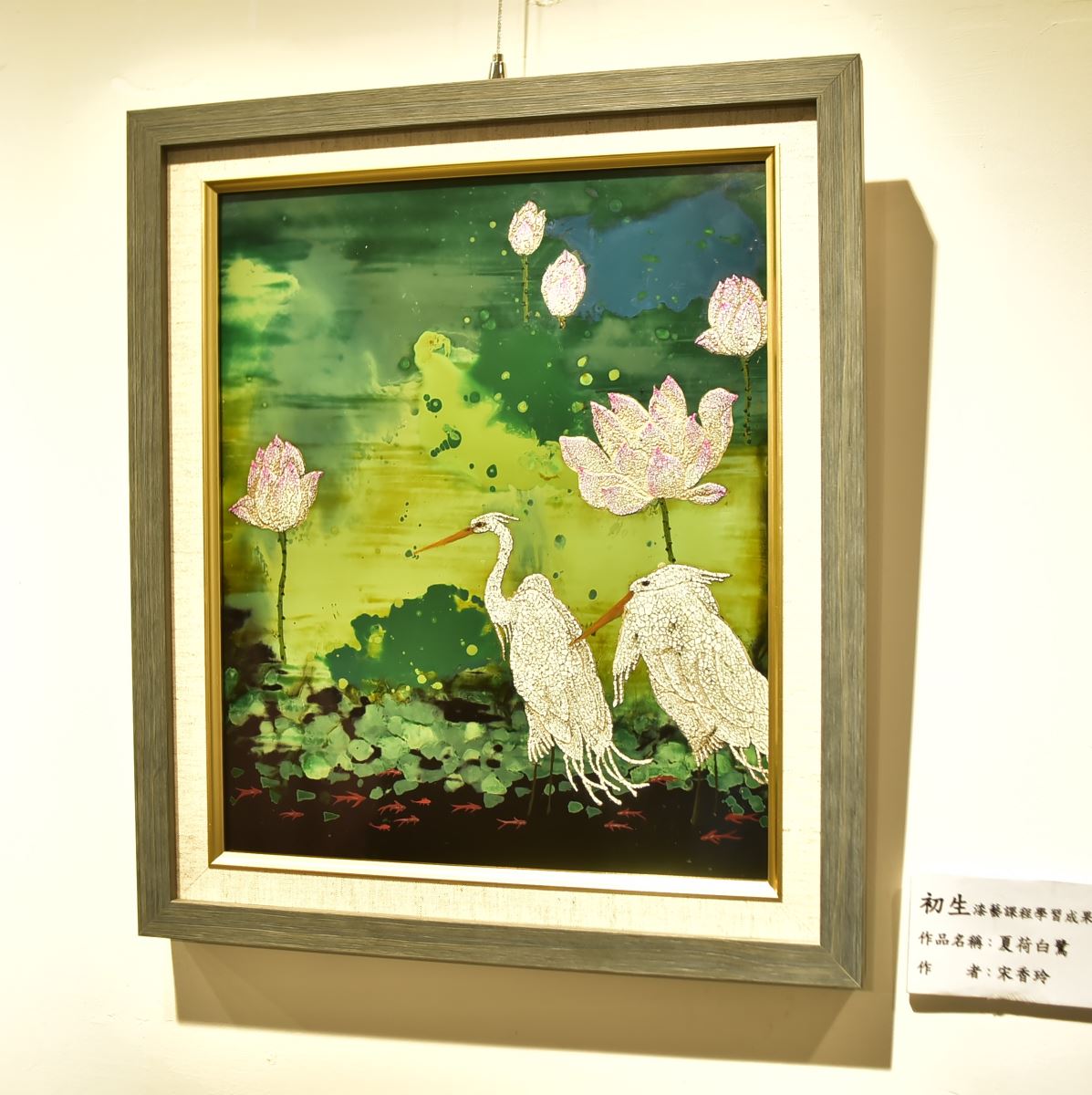 由漆藝家王清源老師所指導的「永生」漆藝課程學習成果展,5月21至27日於華梵大學圖資大樓4樓藝術空間展出師生精彩作品,王清源老師並於現場傳授以蛋殼和貝殼融入漆藝創作的訣竅,令作品散發出迷人閃爍的光澤,吸引許多人前來參觀。